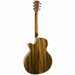 GUITARRA ELECTROACUSTICA DE 6 CUERDAS CON CUTAWAY Guitarra acustica electrificada de aros estrechosde 83mm. Tapa, aros y fondo de Dao. Mástil de caoba. Diapasón y puente de palo rosa. 20 trastes. Escala 25.3'. Pastillas cerámicas. Previo Cort CE304T Acabado Natural Glossy.