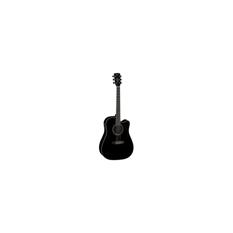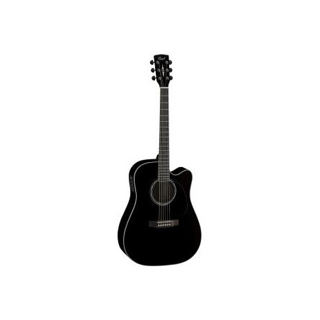 GUITARRA ELECTROACUSTICA DE 6 CUERDAS CON CUTAWAY Guitarra acustica electrificada tipo Dreadnought con cutaway. Tapa solida de abeto. Aros, fondo y mástil de caoba. Diapasón y puente de palo rosa. 20trastes. Escala 25.3'. Pastilla Fishman Sonicore.Previo Fishman Presys. Acabado Black.