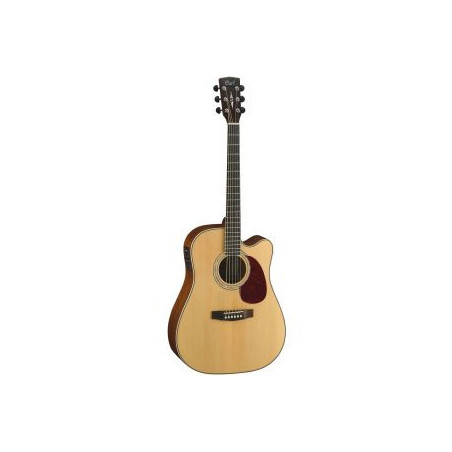 GUITARRA ELECTROACUSTICA DE 6 CUERDAS CON CUTAWAY Guitarra acustica electrificada tipo Dreadnought con cutaway. Tapa solida de abeto. Aros, fondo y mástil de caoba. Diapasón y puente de palo rosa. 20trastes. Escala 25.3'. Pastilla Fishman Sonicore.Previo Fishman Presys. Acabado Natural Satin.
