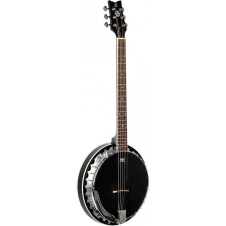 BANJO Banjo de 6 cuerdas. ``Banjitar´´ con cuerdas y afinación de guitarra y cuerpo y construcción de banjo. Acabado negro mate. Incluye funda