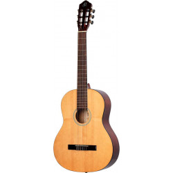 GUITARRA CLÁSICA 4/4 Aunque están especialmente diseñadas pensando en el estudiante moderno de hoy en día, sus materiales profesionales y artesanía de calidad hacen que las guitarras de la serie Student sean una solución económica e ideal para cualquier músico.Tapa de abetoFondo y aros de catalpaRoseta con diseño estilo pinstripeBinding de ABSDiapasón y puente de nogalPuente Ortega con 6 agujerosMástil de caoba