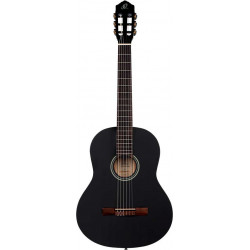 GUITARRA CLÁSICA 4/4 Aunque están especialmente diseñadas pensando en el estudiante moderno de hoy en día, sus materiales profesionales y artesanía de calidad hacen que las guitarras de la serie Student sean una solución económica e ideal para cualquier músico. Esta edición en acabado negro mate resulta elegante ala par que moderna.Tapa de abetoAcabado negro mateFondo y aros de catalpaRoseta con diseño estilo pinstripeBinding de ABSDiapasón y puente de nogalPuente Ortega con 6 agujerosMástil de caoba