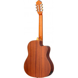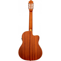 GUITARRA ELECTRO-ACUSTICA PARA ZURDOS Guitarra zurda clásica electrificada con cutaway. Tapa de abeto de Sitka macizo, aros y fondo de sapele, mástil de caoba . Mástil slim neck , más estrecho. Alma regulable. Diapasón de palisandro. Previo Magus Pro con afinador. Acabado natural
