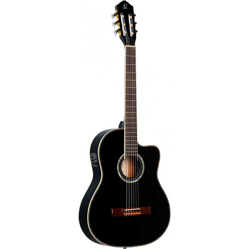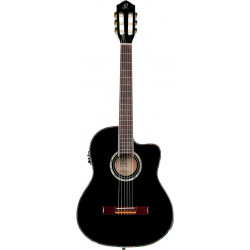 GUITARRA ELECTROACUSTICA CUERDAS DE NYLON Guitarra clásica electrificada con cutaway en color negro.