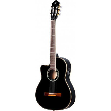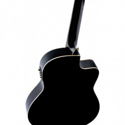 GUITARRA ELECTRO-ACUSTICA PARA ZURDOS Guitarra clásica electrificada con cutaway en color negro.