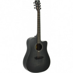 GUITARRA ACUSTICA DE 6 CUERDAS CON CUTAWAY Guitarra acústica con cutaway tipo dreadnought. Sistema confort para mayor comodidad. Tapa laminada de picea. Aros y fondo de sapelly. Puente y diapasón de 'compound rosewood'. Clavijeros cerrados. Cuerdas D´Addario. Acabado mate negro.