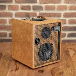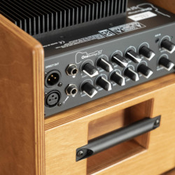 AMPLIFICADOR PARA GUITARRA ACUSTICA 'El One ForStrings 5T es un amplificador para guitarra acústica de 75 watios dotado de 2 entradas independientes (una de micro y otra de linea) con controles de Gain/Volume, Equalización a 3 bandas, Effect send y Master Volume. Con entrada auxiliar para cnecttar reproductor MP3. Con salida directa balanceadaCaractrísticas:Potencia 75 Watt RMSRespuesta en frecuencia 50 Hz - 20 kHz Sensibilidad 1W @ 1m 90 dB SPL Max 108 dB Canal 1 (Jack) Volume, High, Mid, Low & Effect (reverb) Canal 2 (Jack y XLR) Volume, High, Mid, Low & Effect (reverb) Efectos integrados: Reverb Control Master Volume Output DI Out XLR Input Aux IN + Volume Woofer 5'' Tweeter Compression Tweeter Cabinet 2 Vias Bass Reflex Material: Abedul Peso: 7 Kg Altura: 305 mm Anchura: 255 mm Profundidad: 265 mmAcabado en madera'