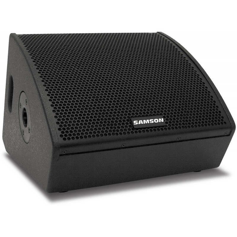 MONITOR DE SUELO (AUTOAMPLIFICADO) Monitor de escenario auto-amplificado de 12' + 1'. Amplificación Classe D. Potencia: 800W de pico. Entradas Mic/Line: Combo XLR-1/4'. Salida link: XLR. Potenciómetro de volumen. Interruptor FOH/Monitor para la optimización del sonido. Vaso para trípode. Asas laterales. Construido en madera. Color negro. Aplicación: clubs, bares, restaurantes o monitorización de DJ para cabinas.