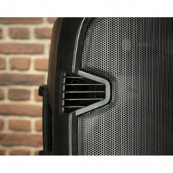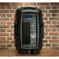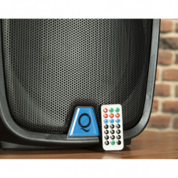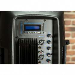 ALTAVOZ DE PA AMPLIFICADO Recinto activo multifunción biamplificado. 400W de Potencia de Pico – 200W RMS. Clase AB. Altavoz de 12''. Impedancia 8 Ohm. Respuesta de frecuencia 50Hz-20Khz. Ecualizador de dos bandas. Entrada Mic (XLR y Jack 1/4') , Aux IN (XLR y RCA)/MP3. Salida Line OUT (XLR). Ecualizador de 2 Bandas. Reproductor de USB, SD, Bluetooth y Radio FM integrado. Control Remoto IR. Pantalla LCD. LED de Encendido y Saturación. Vaso estándar de 1-3/8' (35mm). Posibilidad de uso como monitor de suelo. Peso aprox 10Kg. Dimensiones 380x 300 x 575 mm.