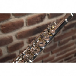 FLAUTA TRAVESERA Flauta travesera en Do. Embocadura: níquel plateado. Cuerpo y llaves: plateadas. Platos: abiertos y alineados. Topes: corcho natural. Tapones: silicona para facilitar aprendizaje. Zapatillas: Pisoni. Accesorios incluidos: escobilla, paño de limpieza y estuche rígido.